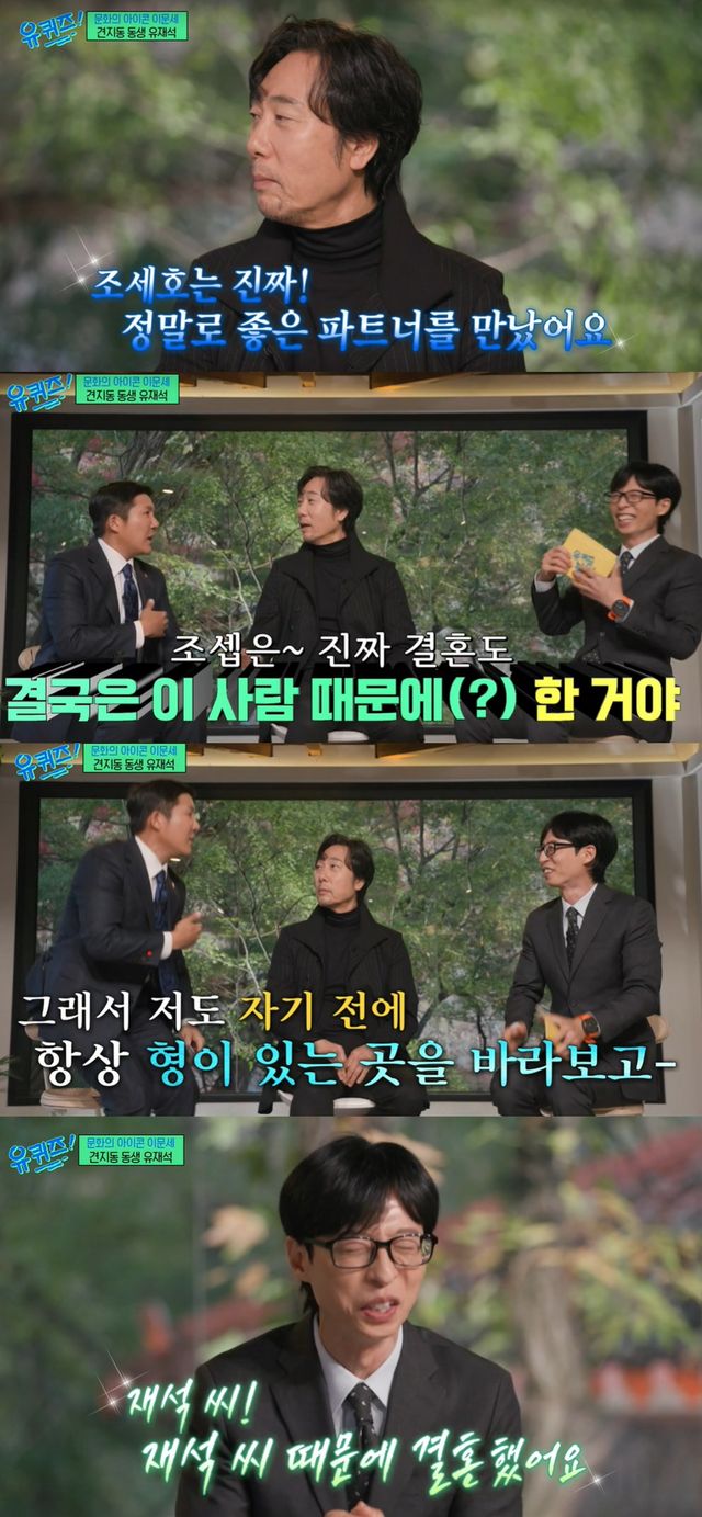 이를 들은 조세호는 "맞다. 저도 자기 전에 항상 형이 있는 곳을 바라보고 '편히 주무세요' 하고 잠에 든다"고 너스레를 떨었다. 유재석은 "조세호 어머님 아버님도 식장에서 제 손을 잡고 '재석 씨. 재석 씨 때문에 결혼했어요' 라고 하셨다"고 말해 웃음을 자아냈다.
