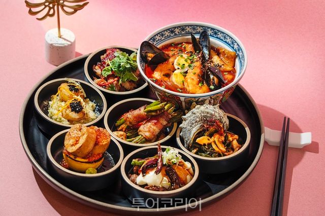 또한, 다양한 주류와 함께 즐기기 좋은 쌈장 소스를 곁들인 마늘쫑과 베이컨, 뿔소라와 해초누들무침, 가이양 치킨, 새우 해산물 떡볶이, 아귀간 구이와 간장절임 연어알, 모찌리도후와 쇠고기 고추볶음 뿐만 아니라 구운관자, 캐비어가 올라간 감태 리소토까지 푸짐한 퓨전 페어링 한상메뉴가 포함되며, 페어링 메뉴는 인원수에 따라 1인 1상으로 제공되는 것이 특징이다.