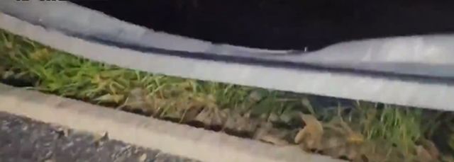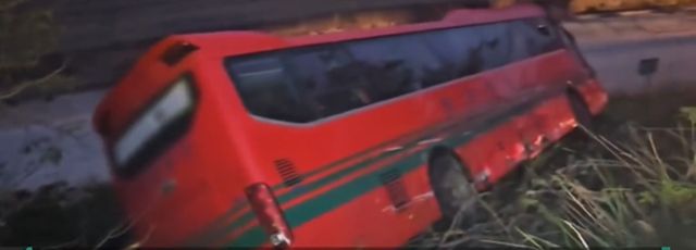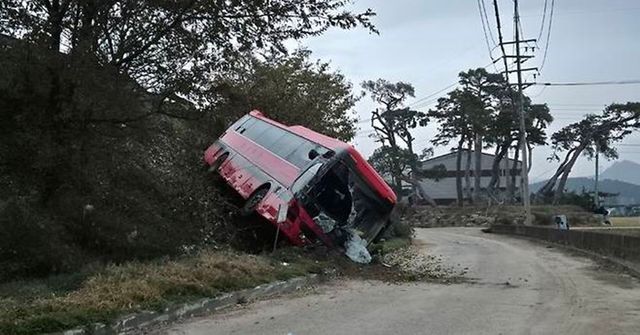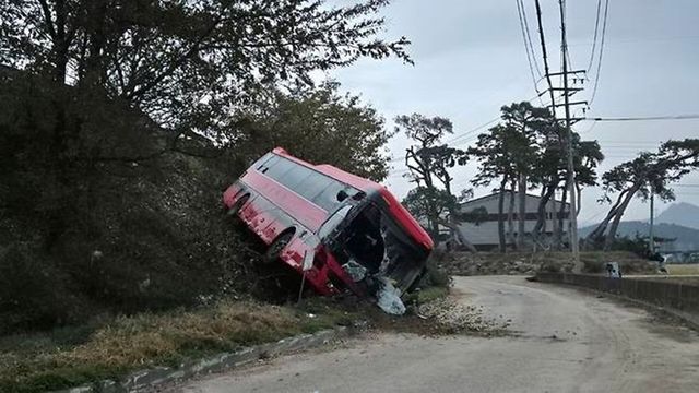 충돌 직후 버스는 보호난간(가드레일)을 벗어나 언덕 비탈길로 미끄러졌다.