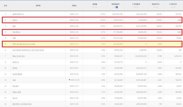 실시간 예매율 캡처. / 영화관입장권통합전산망