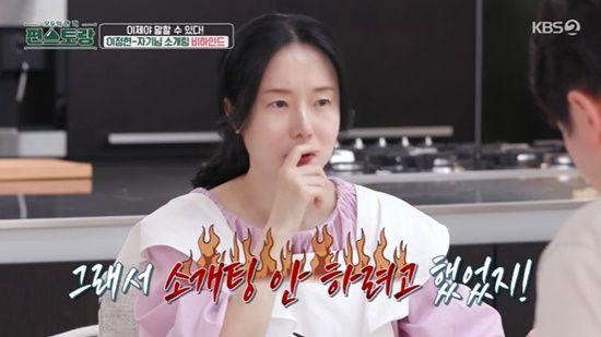 "나 (남자친구) 한 명도 없었어"라고 능청스럽게 말하던 이정현은 "(소개팅 전에) 자기 사진을 보고 처음에 날라리인 줄 알았다. 그래서 소개팅을 안한다고 했었다"고 말했다.