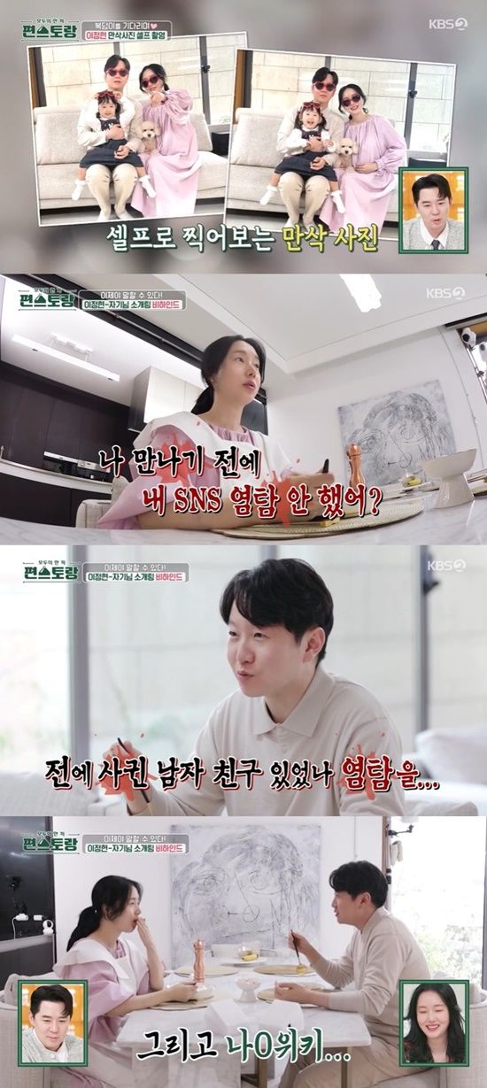 이정현과 이야기를 나누던 남편은 "내가 원래 SNS를 안하는데"라고 말을 꺼냈고, 이정현은 "나 만나기 전에 내 SNS든 뭐든 들어온 적 없었어?"라고 물었다.