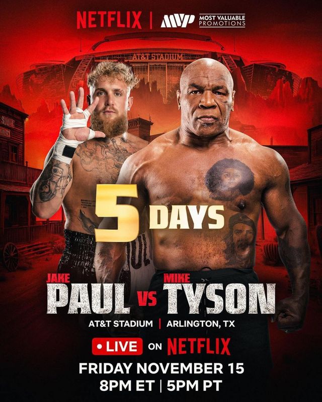 마이크 타이슨과 제이크 폴의 경기는 한국시간 기준 16일 오전 10시 미국 텍사스주 알링턴에 위치한 AT&T 스타디움에서 펼쳐진다.