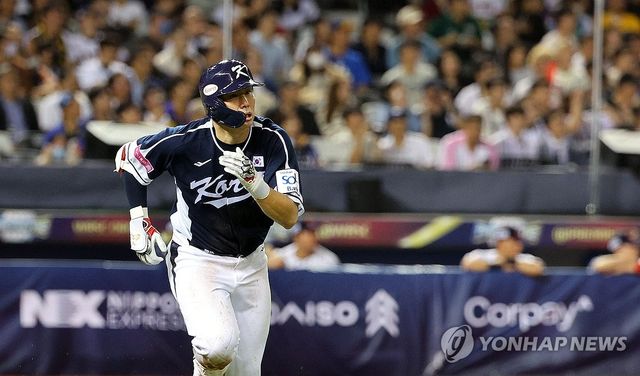 선취점 뽑아낸 홍창기_(타이베이=연합뉴스) 한종찬 기자 = 15일 오후 대만 타이베이돔에서 열린 세계야구소프트볼연맹(WBSC) 프리미어12 2024 B조 조별리그 대한민국과 일본의 경기. 2회초 2사 1,3루에서 홍창기가 1타점 적시타를 치고 달리고 있다. 2024.11.15 saba@yna.co.kr
