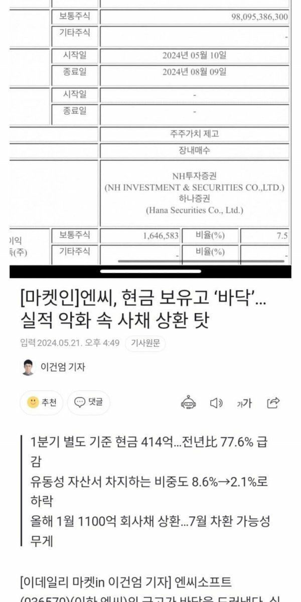 자사주 매입이였구나..