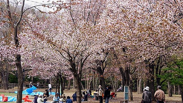 삿포로 시민들에게 많은 사랑을 받는 ‘마루야마 공원’에서 벚꽃 아래에서 시민들이 휴식을 취하고 있다/ 삿포로 시 제공