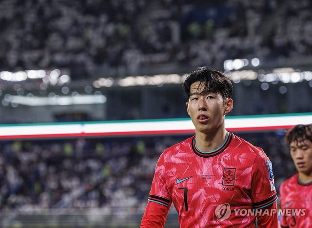 14일 오후(현지시간) 쿠웨이트 자베르 알 아흐메드 국제 경기장에서 열린 2026 북중미 월드컵 아시아지역 3차 예선 B조 5차전 한국과 쿠웨이트의 경기에서 손흥민이 후반 초반 교체돼 이동하고 있다. / 연합뉴스