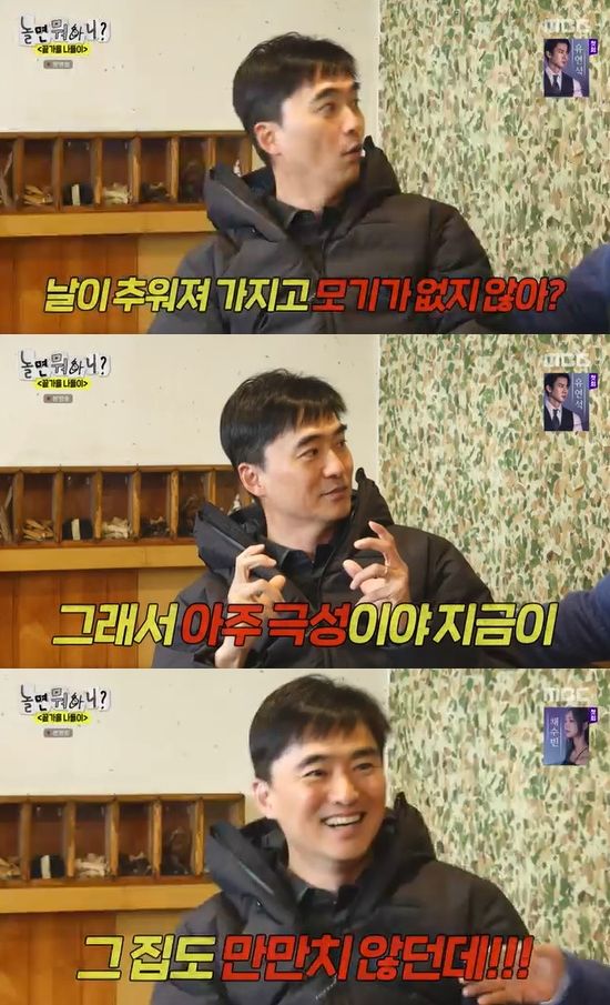 유재석은 "날이 쌀쌀해졌는데 모기가 없지 않냐"고 물었다. 이에 김석훈은 "모기가 추워지면 안으로 들어온다. 아주 극성이다"라고 하면서도 "그 좋은 집은 괜찮지"라고 유재석의 집을 언급해 웃음을 자아냈다.