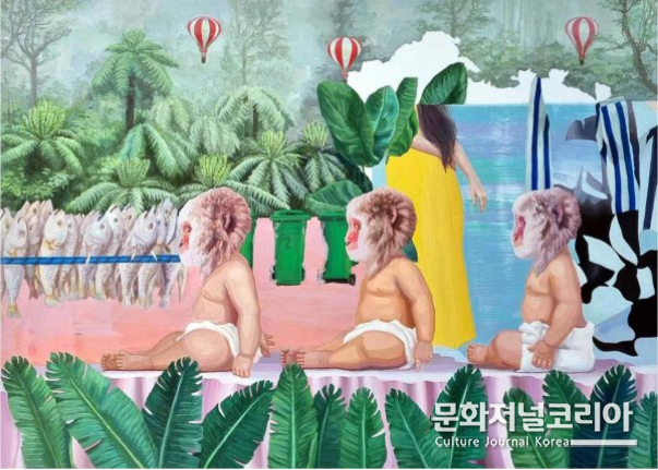 부산을 기반으로 활동하는 서유정 작가의 몽타주 회화는 현실과 가상의 경계를 넘나들며, 서로 다른 이미지와 형상들을 결합하여 파편화된 현실을 재구성하는 것이 특징이다. 작가의 작업은 감각과 지각의 표현성을 강조하며, 다양한 사회적, 개인적 경험을 조합해 새로운 시각적 내러티브를 형성한다. 이러한 몽타주 기법은 다층적인 정체성을 시각화하며, 다중적 귀속이라는 주제와도 연결성을 갖는다. 작가는 ‘생태적 조건’ 혹은 ‘생태적 문명’에 대한 심도 있는 사유를 가상과 실재, 진실과 왜곡이 공존하는 현실에 대한 은유이자 강력한 알레고리로 가득 채웠다. 서유정은 회화의 고유성과 이미지에 대해 보수적으로 접근하는 태도를 보이는 듯하지만, 자신이 언급한 것처럼 “상실과 치유에 관한 시적 접근”이 남긴 서사와 이에 따른 메시지는 강렬하다. 예술의 시대정신 그리고 회화-이미지의 관계는 어떠해야 하느냐는 질문을 던지며, 물리적으로 한정된 캔버스라는 소우주(小宇宙)에 자신의 모든 것을 치열하게 쏟아붓는 작가의 모습을 생각해본다.