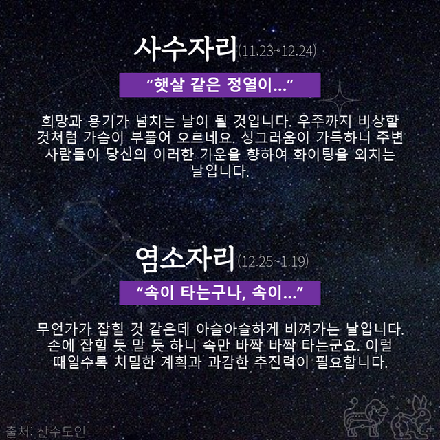 재물운이 최상인 날입니다. 스스로도 믿기지 않을 정도로 금전적인 행운이 따르게 될 것입니다. 복권운도 좋으니 한 장 사보는 것도 좋겠고요. 못 받을 줄 알았던 돈을 갑자기 받게 될 수도 있습니다.