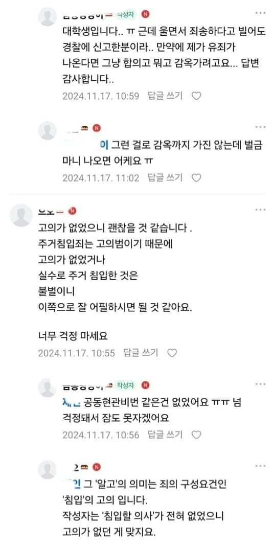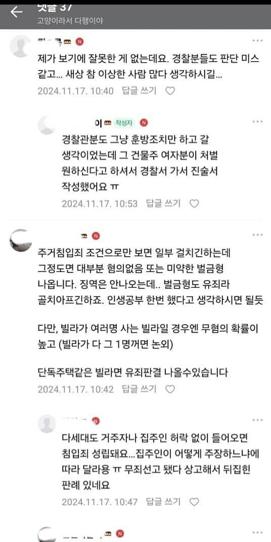 엄청 과민반응하면서 횐님 주거침입죄로 경찰서가서 신고때림