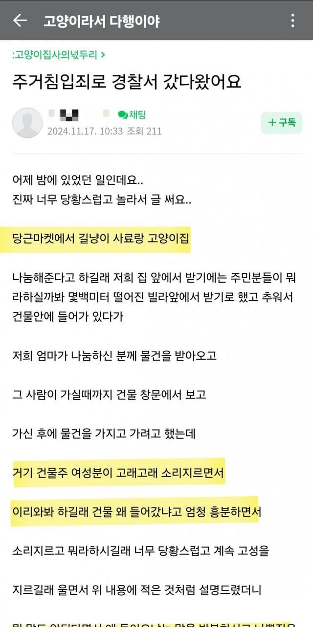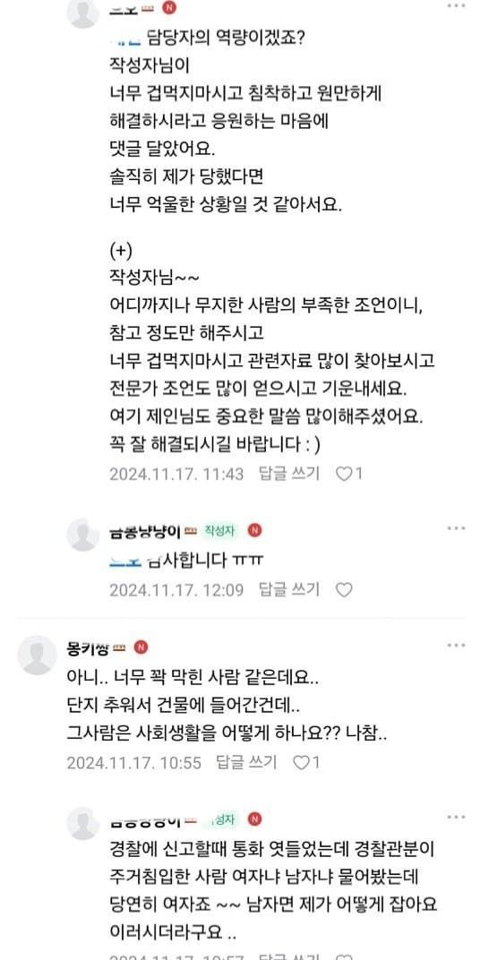 또다른 영캣맘이 건물주한테 주거침입으로 잡혀서 경찰서 감