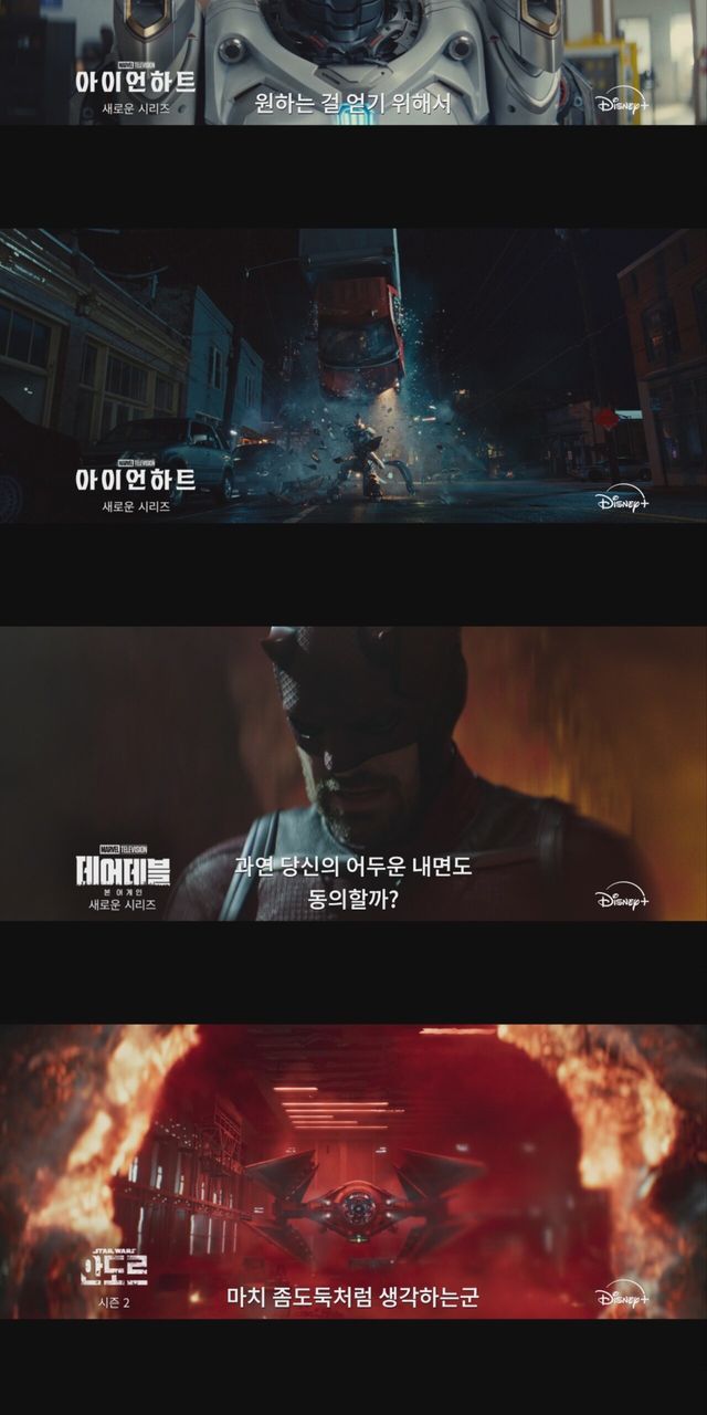 이어 마블 최고의 기대작들도 신작을 예고했다. 낮에는 변호사로, 밤에는 슈퍼 히어로 '데어데블'이 되어 어둠과 맞서 싸우는 이야기를 담은 시리즈 '데어데블: 본 어게인'도 이전보다 한층 더 강렬한 매력으로 돌아올 것을 예고해 팬들의 마음을 설레게 만들고 있고, 영화 '블랙 팬서: 와칸다 포에버'에서 천재적인 발명가로 등장해 인상 깊은 활약을 선보이며 궁금증을 모았던 캐릭터 '리라 윌리엄스'의 이야기를 본격적으로 담아낼 시리즈 '아이언하트'가 2025년 디즈니+에서 공개될 예정이다.