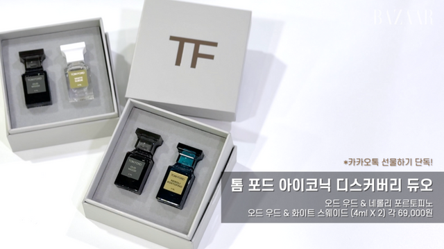 오직 카카오톡 선물하기에서 만날 수 있어 더욱 의미 있는 톰 포드 뷰티의 디스커버리 듀오. 그간 높은 가격대로 톰 포드 향수를 경험하지 못했던 이들에게 입문템으로 제격이다. 톰 포드 향수 중 베스트 셀러인 오드 우드, 화이트 스웨이드, 네롤리 포르토피노 중 2가지 향으로, 두 개의 선택지가 구성되어있다.