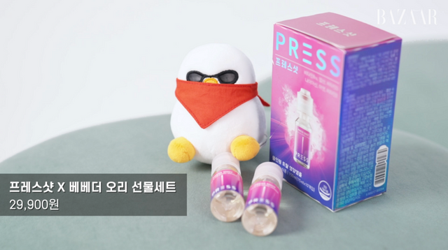 그 어느때보다 건강에 관심이 높아지는 연말, 연초. 물 없이도 간편하게 비타민 충전을 할 수 있는 프레스 샷은 사랑하는 사람들의 건강을 생각하며 전하기 가장 최적의 아이템이다. 귀여운 스트레스볼 인형도 함께 증정되니, 근심 걱정은 잠시 내려두고 힘내라는 응원의 메시지를 이 선물과 함께 보내보는 것은 어떨까?