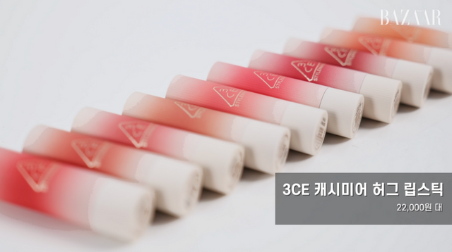 드뮤어 뷰티 트렌드에 안성맞춤, 3CE의 신상 립스틱인 '캐시미어 허그 립스틱'은 바르지 않은 듯한 극강의 편안함이 특징이다. 고급진 캐시미어처럼 입술에 컬러를 부드럽게 감싸준다. 이 영상에서 소개한 3가지의 메인 컬러를 포함한 총 10가지 선택지가 준비되어있다.