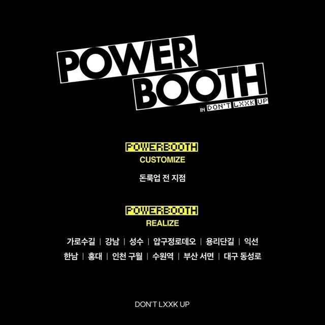 지드래곤과 셀프 포토부스 브랜드 돈룩업(DON’T LXXK UP)이 만났습니다. 지난 10월 31일에 공개된 지드래곤의 신곡 ‘POWER’ 뮤직비디오를 모티프로 한 포토부스를 선보인 것인데요. 출시일은 11월 18일 오후 12시. 돈룩업 전 지점에서 이모지와 프레임을, 가로수길, 강남, 성수, 압구정 로데오 등 12개 주요 지점에서는 해당 뮤직비디오 속에 등장한 ‘POWERBOOTH’를 만나볼 수 있습니다.