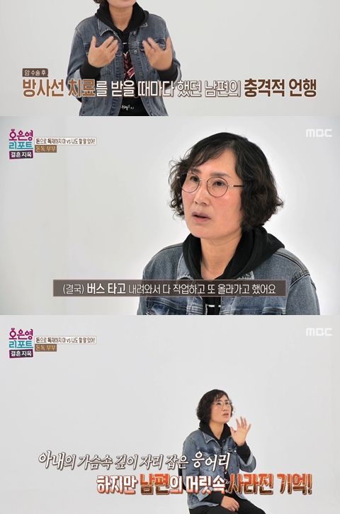 (엑스포츠뉴스 임나빈 기자) 아내가 항암 치료를 받는 중에도 일하라고 독촉했던 남편의 만행이 충격을 안겼다.