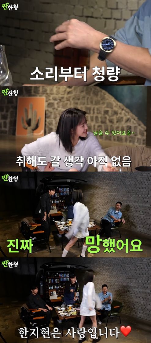 술 맛이 하나도 안 난다는 말에 진짜 그렇냐며 싱글벙글 술을 받은 한지현은 마시자마자 "음! 아, 맛있다"이라고 격하게 리액션했다.