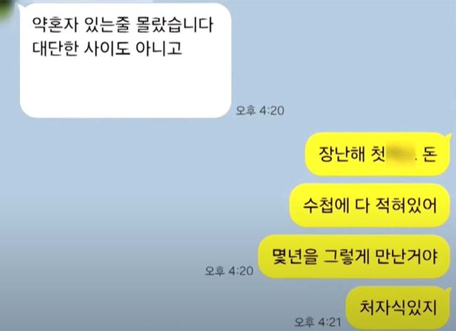 결국 A 씨는 참다못해 해당 남자에게 직접 연락을 취했다. A 씨는 "여자친구가 약혼녀임을 알고 있을 텐데 왜 계속 연락하느냐"며 "남의 가정을 파탄 내지 말라"고 경고했다. 그러자 남자는 "약혼자가 있는 줄 몰랐다. 다시는 연락하지 않겠다"고 답했다. 그러나 ‘사건반장’에 "그 여성과는 가끔 만나 식사만 했다"며 성매매 의혹을 부인했다. 호텔에서 찍은 사진에 대해서는 "기억나지 않는다"고 주장했다.
