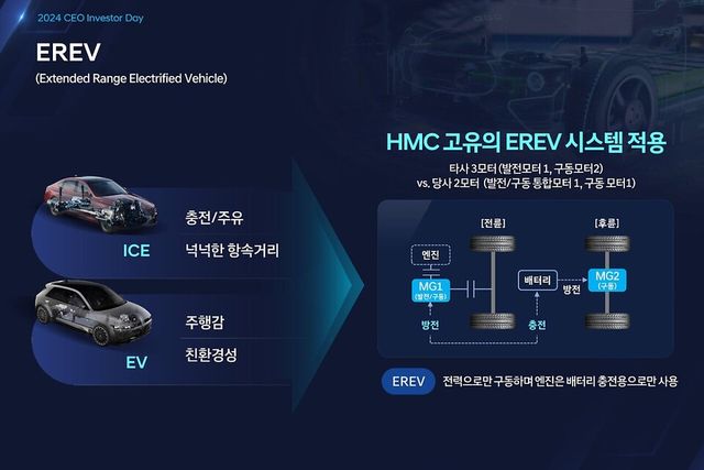 현대차가 투입할 첫 EREV 신차는 제네시스 중형 스포츠유틸리티차량(SUV) 'GV70 EREV 북미형' 모델이며, 국내를 포함한 해외시장 전파 계획은 별도로 검토 중이다.