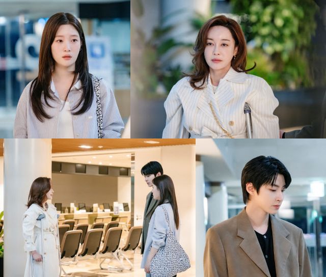 이와 함께 공개된 사진 속에는 김산하와 권정희, 그를 찾아왔다가 두 사람을 마주하게 된 윤주원 사이의 불편한 공기가 고스란히 담겨있다. 딸이 죽은 이후로 한 번도 아들을 향해 웃은 적 없는 권정희의 냉정한 얼굴과 엄마 앞에선 그저 참기만 해온 김산하의 포기가 짙게 깔린 태도가 모자(母子)의 현실을 비추고 있다.