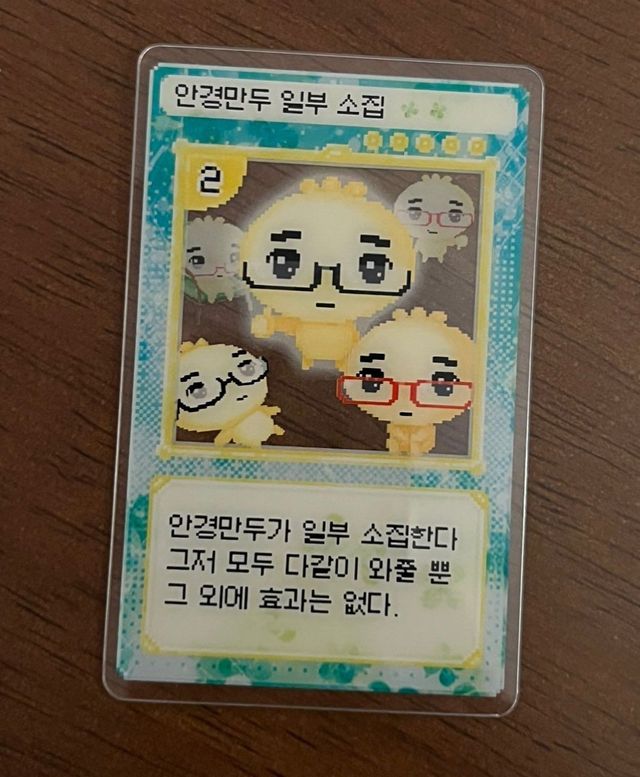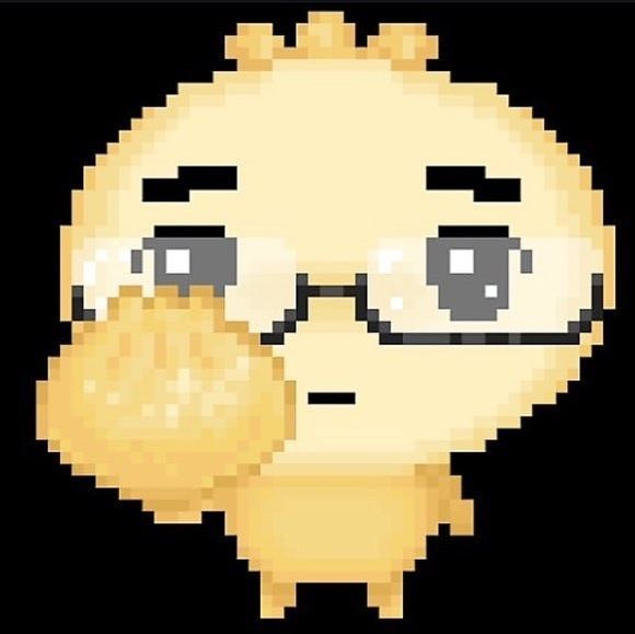 동그란 만두 얼굴에 안경을 쓴 채 무표정인지 진지한지 모를 아리송한 표정을 짓는 캐릭터. 만두가 쓰고 있는 빨간 안경부터 반무테안경까지 다양하다. ‘수상한’ 혹은 ‘이상한 수식어가 앞에 붙는 것처럼 형용할 수 없는 묘한 매력으로 자꾸 찾아보게 된달까. 도트로 이루어진 픽셀 아트 Pixel Art로 작업해 1970-80년대의 8비트와 16비트 비디오 게임 시대 속 캐릭터 슈퍼마리오나 팩맨을 연상시킨다. “입 닫고 만두나 드세요”하며 만두가 만두를 한 손에 들고 있는 모습이나 2000년대 초, 사이버 공간에서 쓸 법한 서체로 ‘안경만두를 보신 적이 있으신가요?’라는 아련하게 질문을 던지는 것이 킬링포인트다. 안경만두를 그린