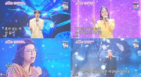 '미스터트롯2' 진 안성훈은 '미스트롯3' 진 정서주와 맞대결을 벌였다. 앞서 '미스터로또'에서 100점으로 정서주를 이겼던 경험이 있는 안성훈은 장윤정의 '너 떠난 후에'를 선곡, 감성 짙은 보이스로 듣는 이들을 단숨에 몰입시켰다. 안성훈은 중후반부로 갈수록 몰아치는 감성을 보여주며 보는 이들의 마음을 적셨다.