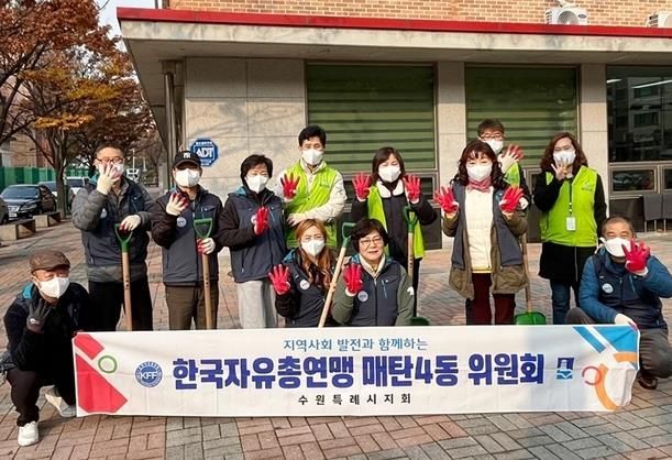 [와이뉴스] 수원시 영통구 자유총연맹 매탄4동 위원회는 지난 21일 자유총연맹 위원 10명과 매탄4동 민상희 동장 등 직원을 포함하여 15명이 함께 참여한 가운데 ‘가을맞이 환경정비의 날’ 대청소를 실시했다.