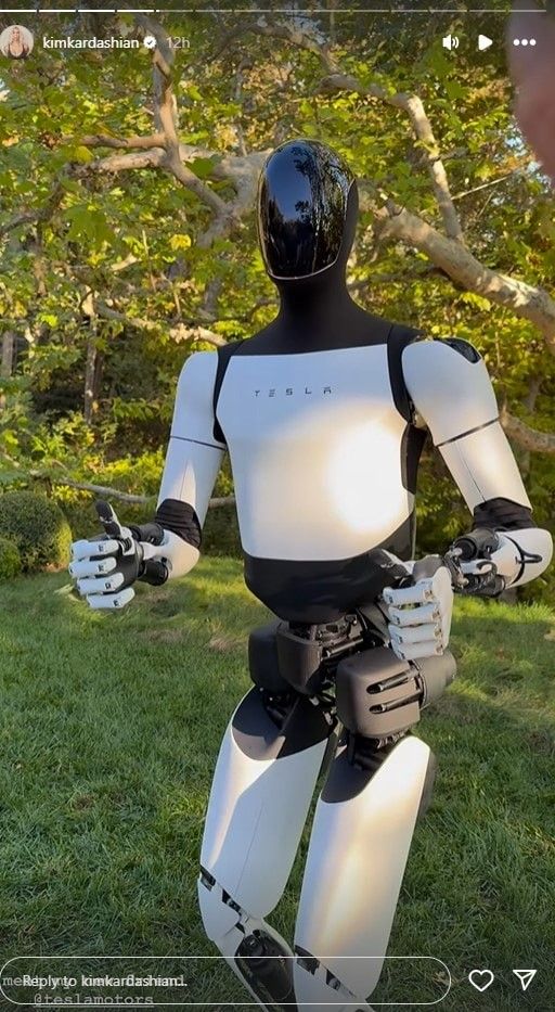 리얼리티 스타이자 사업가인 킴 카다시안은 최근 자신의 인스타그램 스토리를 통해 테슬라가 개발 중인 휴머노이드 로봇 옵티머스와의 일대일 만남 장면을 담은 영상과 사진을 공개했다. 또한 최근 공개된 테슬라의 2도어 신차 사이버캡을 근접 촬영한 콘텐츠도 게시하며 시승을 암시했다.