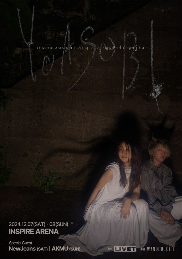 21일 라이브 엔터테인먼트 브랜드 리벳(LIVET)에 따르면 오는 12월 인천광역시 중구 인스파이어 아레나에서 개최되는 ‘요아소비 아시아 투어 2024~2025 ‘초현실 / cho-genjitsu’’에 악뮤와 뉴진스의 게스트 출연을 확정했다.