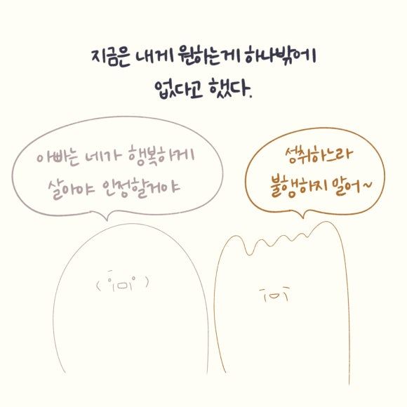 나는 여전히 부모의 인정을 받고 싶다. 그리고 이제는 그걸 당당히 요구할 정도의 어른이 되었다. 부모님은 이제 나의 행복을 바라주는 부모가 되었다.