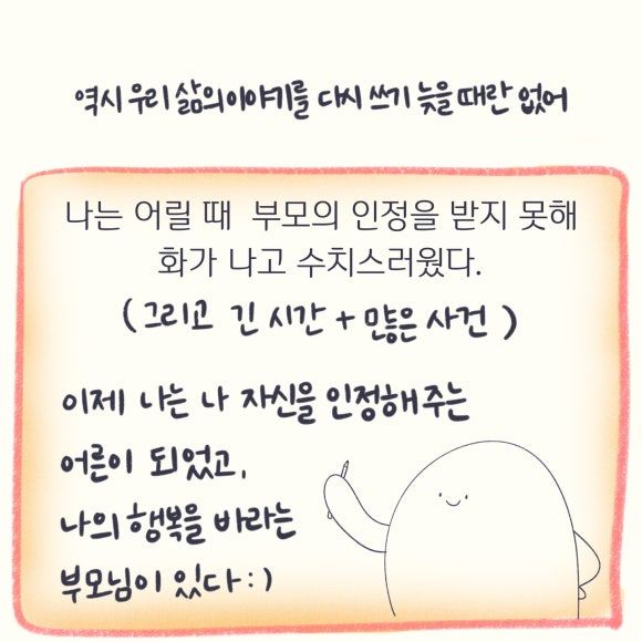 " 부모의 인정을 갈구하다니 나는 참 미숙하구나.