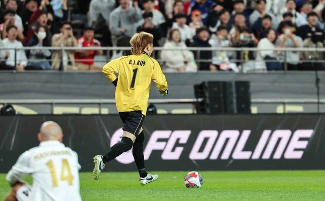 서울 마포구 서울월드컵경기장에서 열린 '2024 넥슨 아이콘매치' FC 스피어와 실드 유나이티드의 경기, FC 스피어 골키퍼 김병지가 공격을 전개하고 있다. / 뉴스1