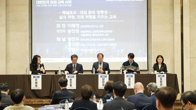 [한국대학신문 임연서 기자] 22일 서울대 호암교수회관에서 진행된 ‘2024 대한민국 미래 교육 서밋’에서 진행된 두 번째 발표 주제는 ‘미래 역량을 키우는 대입 패러다임’으로 송진웅 서울대 교원양성혁신센터장(한국IB교육학회장)이 맡았다. 이혜정 교육과혁신연구소 소장이 좌장으로 양찬우 한국대학교육협의회 입학지원실장, 김신완 MBC PD(다큐멘터리 <교실이데아> 연출자), 장밝은 경북대사대부고 수석교사가 패널 토론자로 참여했다. 교실이데아>