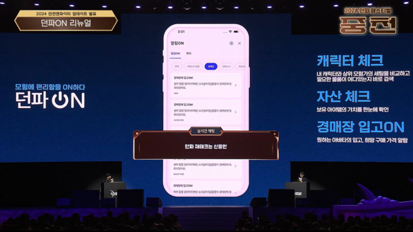 외에도 UI·UX를 보다 현대적인 형태로 가다듬는 작업이 예고된 가운데, ‘던파ON’ 앱 리뉴얼 소식 또한 이용자들의 매우 뜨거운 호응을 얻었다. 자신의 캐릭터 스펙 및 자산 체크, 경매장 매물 입고 알림 등 마치 은행 애플리케이션과 같이 변한 ‘던파ON’이 11월 28일 이용자들을 찾는다.