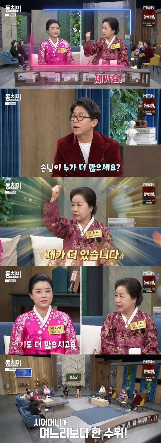 23일 방송된 MBN '속풀이쇼 동치미'에는 무속인 시어머니 고춘자와 며느리가 라이벌 대결을 펼쳤다.