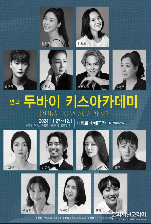 배꼽추수 로맨틱코메디 "두바이키스 아카데미"는 오는 11월 27일 7시반 첫공부터 12월 1일 3시를 막공으로 대학로 한예극장(예매처 인터파크)에서 8회 공연된다.
