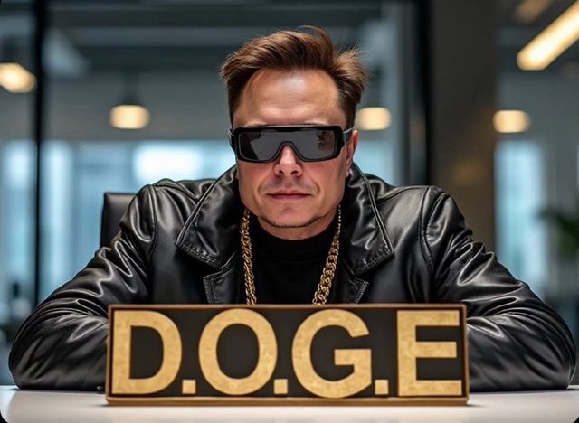 일론 머스크 테슬라 최고경영자(CEO)가 정부효율성위원회(D.O.G.E: Department of Government Efficiency)라고 적힌 명패 앞에 앉아 있다. / 머스크 CEO X