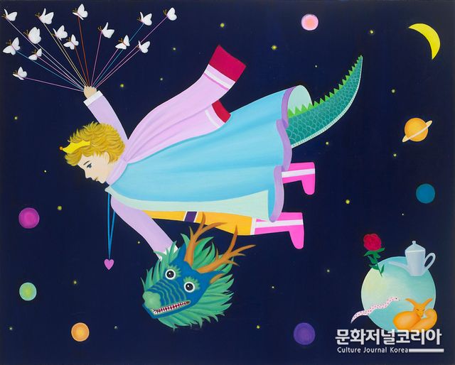 신화는 살아있는 생명체 우리네 삶을 달빛에 투영해 상상력을 동원하면서 우리의 의식을 지배한다. 신화에는 여러 존재가 등장하지만, 그중에서도 ‘용’은 수 세기 동안 인간의 상상력을 사로잡으며 동, 서양의 다양한 신화와 전설에 자주 등장하는 존재이다. 하늘이 열리고 긴 수련을 견딘 용이 여의주를 가지고 승천하듯 천지가 개벽하고 세상이 바뀔 수 있다는 경이로운 존재 ‘용’은 이번 전시에서 신비롭고 영롱한 힘으로 건강한 일상을 영위할 수 있는 에너지를 선사할 것이다.
