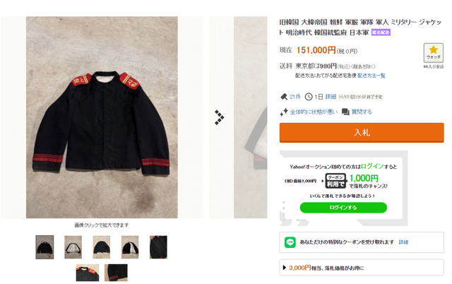 보통 경매 마감 1시간전에 입찰금이 폭등하지만 유일한 대한제국군 사병 군복이라는 타이틀 때문에 입찰이 치열함