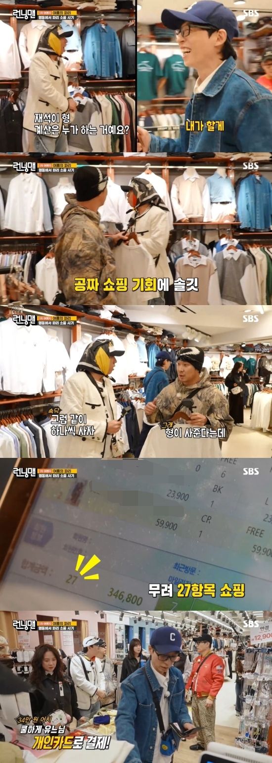 이어 다른 멤버들도 온갖 아이템들을 골라 담았고, 결국 27개의 아이템을 구입해야 했다. 약 34만원이 찍혔지만, 유재석은 자신의 개인카드로 쿨하게 이를 계산하며 "그리고 우리가 방송국 돈을 아껴야 한다"고 말했다.