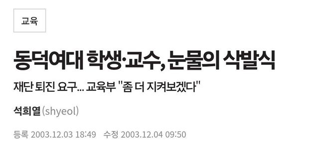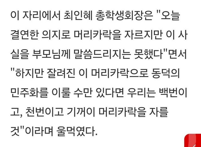 동덕 재단의 독재체제 종식과 학교 정상화를 위해 학생 대표로서 삭발투쟁을 한 동덕 총학생회장 누나