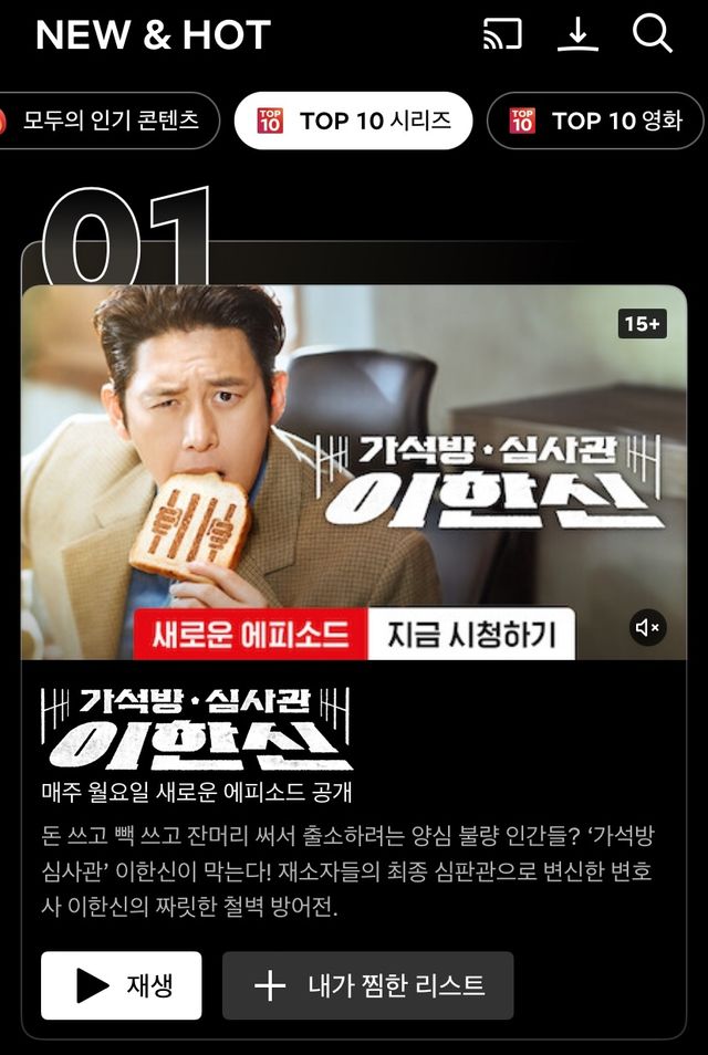 넷플릭스 '대한민국의 TOP 10 시리즈' 1위 자리를 지켜가고 있는 드라마 '가석방 심사관 이한신' / 넷플릭스