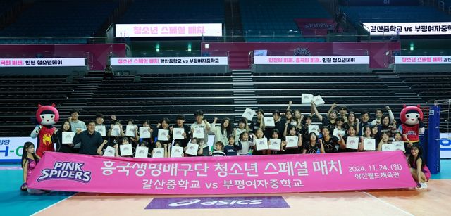 여자프로배구 흥국생명은 24일 인천삼산월드체육관에서 열린 도드람 2024-2025 V-리그 여자부 2라운드 현대건설과의 맞대결을 '인천 청소년 데이'로 지정해 지역 청소년들을 위한 다양한 이벤트를 진행했다. 이번 행사는 '인천의 미래, 흥국의 미래'라는 슬로건 아래, 인천 청소년들에게 배구를 통한 특별한 경험과 잊지 못할 추억을 선사하기 위해 마련됐다.
