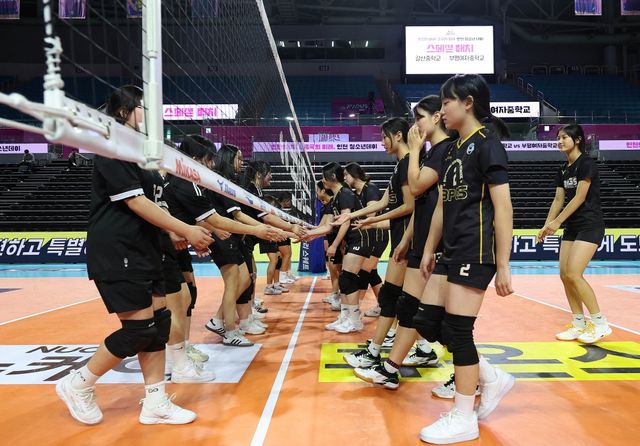(엑스포츠뉴스 인천, 유준상 기자) 프로 선수들의 경기를 앞두고 코트의 열기가 후끈 달아올랐다. 배구를 사랑하는 인천 지역 청소년들이 잊지 못할 하루를 보냈다.