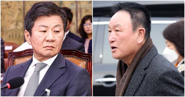 정몽규 대한축구협회 회장과 홍명보 축구대표팀 감독이 지난 9월 4일 오전 서울 여의도 국회 문화체육관광위원회에서 열린 대한축구협회 등에 대한 현안질의에 출석해 자리해 있다 / 뉴스1