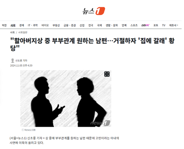 이어 "근데 남편이 오랜만에 관계하고 싶다고 자꾸 보채서 저는 시간과 장소는 가려서 하자고 거부했다. 저희 집도 아니고 상 중인데. 그랬더니 '나 집에 갈래'라며 자기는 할 만큼 했다고 짐 가지고 집에 가겠다더라"라며 황당해했다.