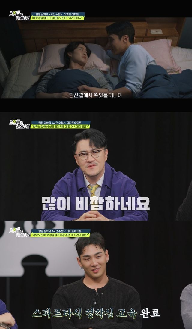 이날 실화 사연의 의뢰인은 추첨제 청약 당첨을 위해 혼인 신고를 미루고 아이 없이 남편과 '딩크'로 살고 있었다. 그러나 아내는 남편의 불륜을 의심했고, 탐정은 의문의 여성과 서로 다정하게 음식을 먹여주는 남편을 포착했다. 알고 보니 해당 여성은 부동산에서 소개한 '청약 당첨용 가짜 부인'이었다.