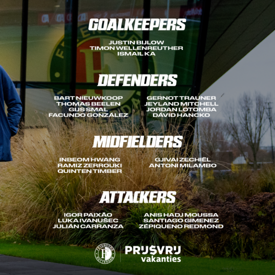페예노르트가 26일(한국시간) 공식 홈페이지를 통해 다가오는 맨체스터 시티와의 원정 경기에 나설 22인의 출전 명단을 발표했다. 황인범이 포함돼 영국 맨체스터로 향하면서 그는 2년 연속 맞대결을 갖는다.